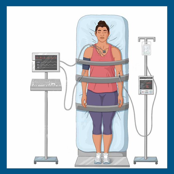 Patients are placed on a table with straps placed around their legs, midsection, and chest to secure them in place and connected for continuous EKG and blood pressure monitoring. The table is then tilted head up to mimic standing in a stationary position. A drug such as nitroglycerin may be used to enhance the possibility of the patient passing out. The test is used to evaluate patients who have unexplained passing out (syncope) dizziness etc.